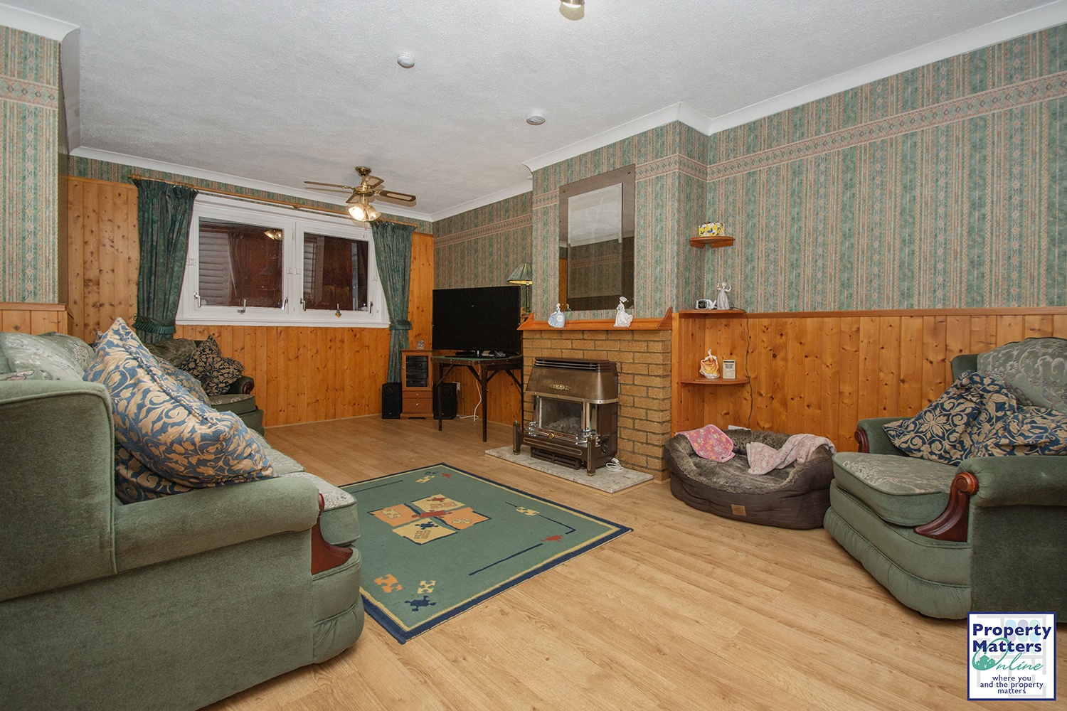 The ground floor accommodation begins with a welcoming hallway, complete with a convenient under-stair storage cupboard. The bright and airy living room enjoys dual-aspect windows, a feature gas fireplace, and ample space for a dining area.