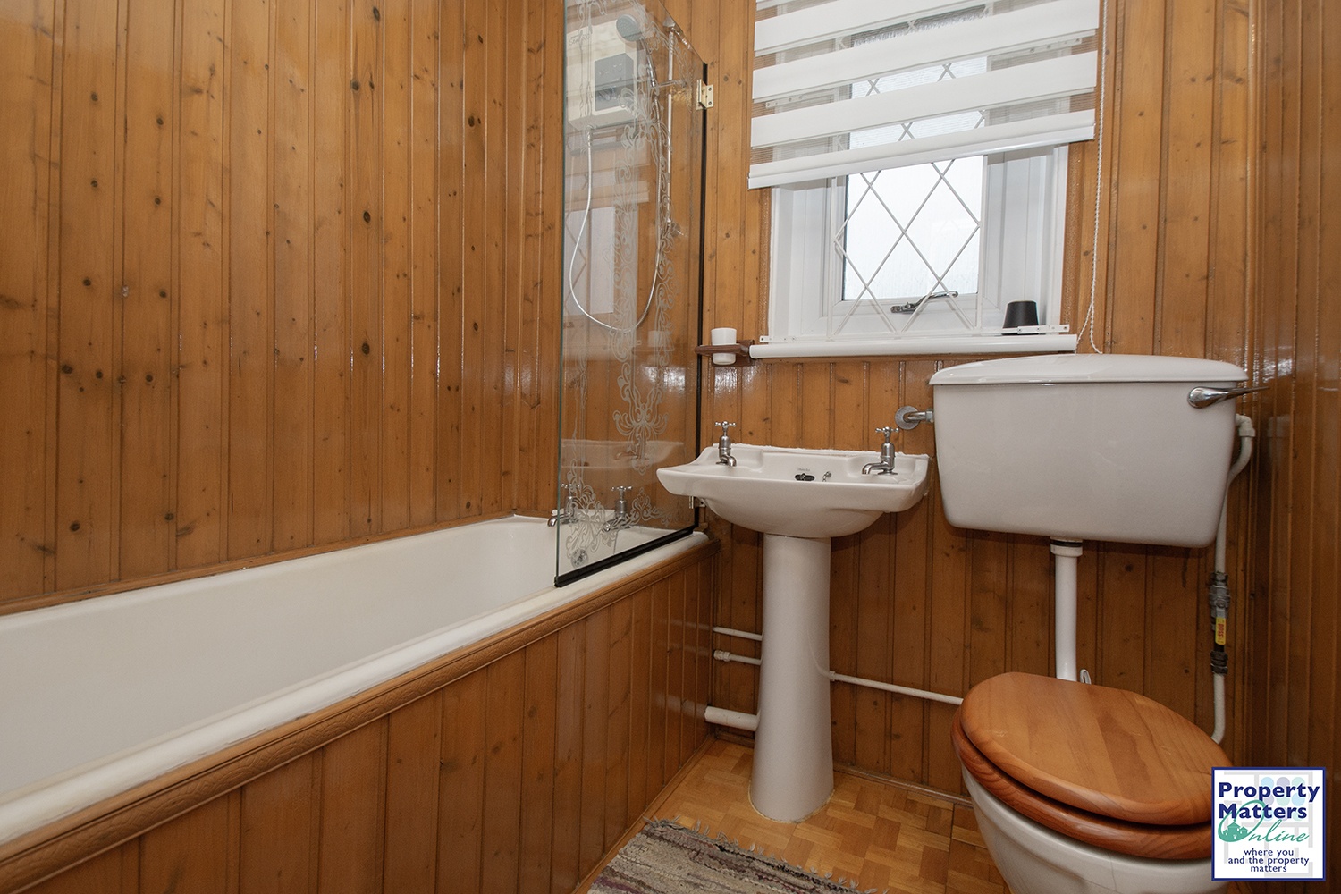 Upstairs, youll find twowell-proportioned double bedrooms, both benefiting from built-in wardrobes. Thefamily bathroom is fitted with a wash hand basin, WC, and a bath with overheadshower.