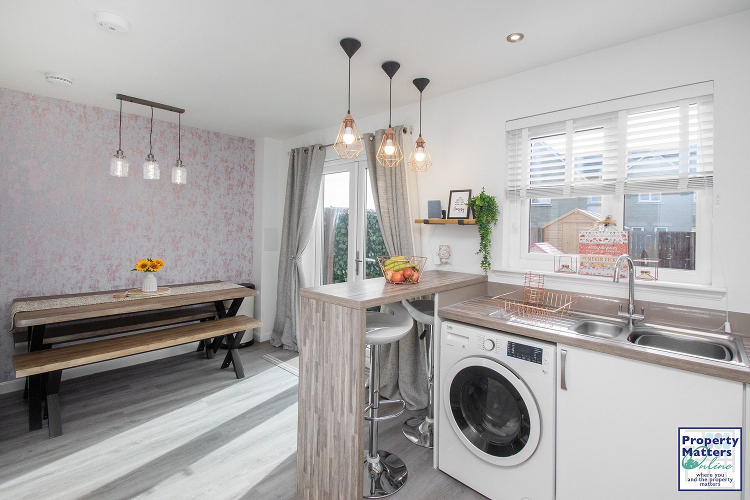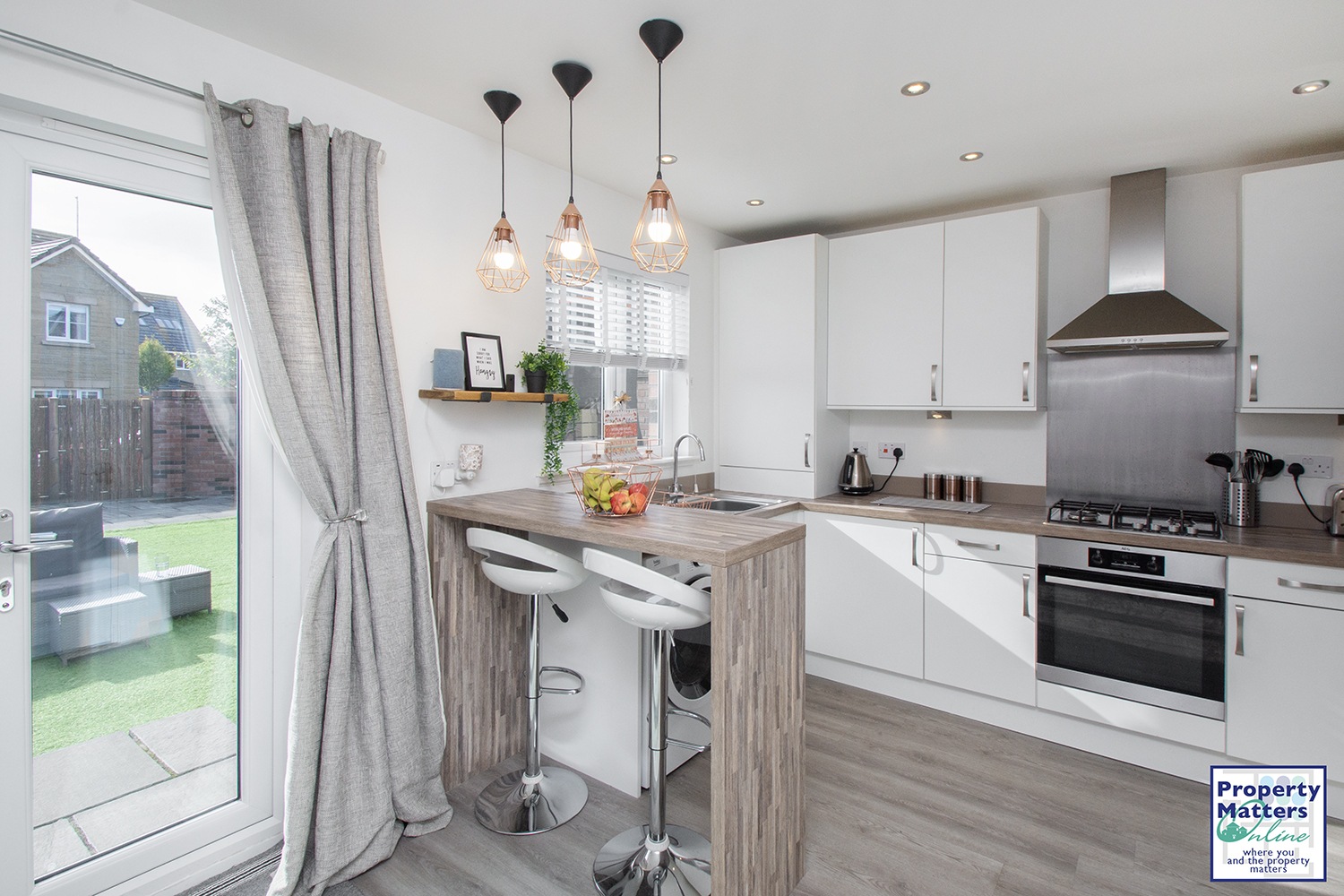 Upon entering, you are greeted bya welcoming entrance hall, which leads to a modern two-piece WC. From here, youstep into the bright and spacious lounge, featuring a stylish media wall and aconvenient storage cupboard tucked under the staircase. The heart of the homeis the impressive 15’ open-plan kitchen and dining area. The contemporarykitchen is fitted with sleek upper and lower wall-mounted cabinets, integratedfridge/freezer, oven, gas hob, and extractor fan. Thoughtfully designedunder-cabinet lighting creates a warm ambiance, and a breakfast bar offersadditional space for casual dining. The dining area comfortably accommodates afamily-sized table, and patio doors open out to the fully enclosed rear garden,allowing for an abundance of natural light.