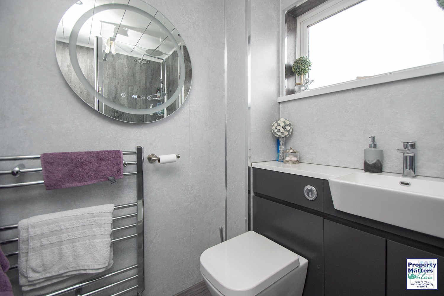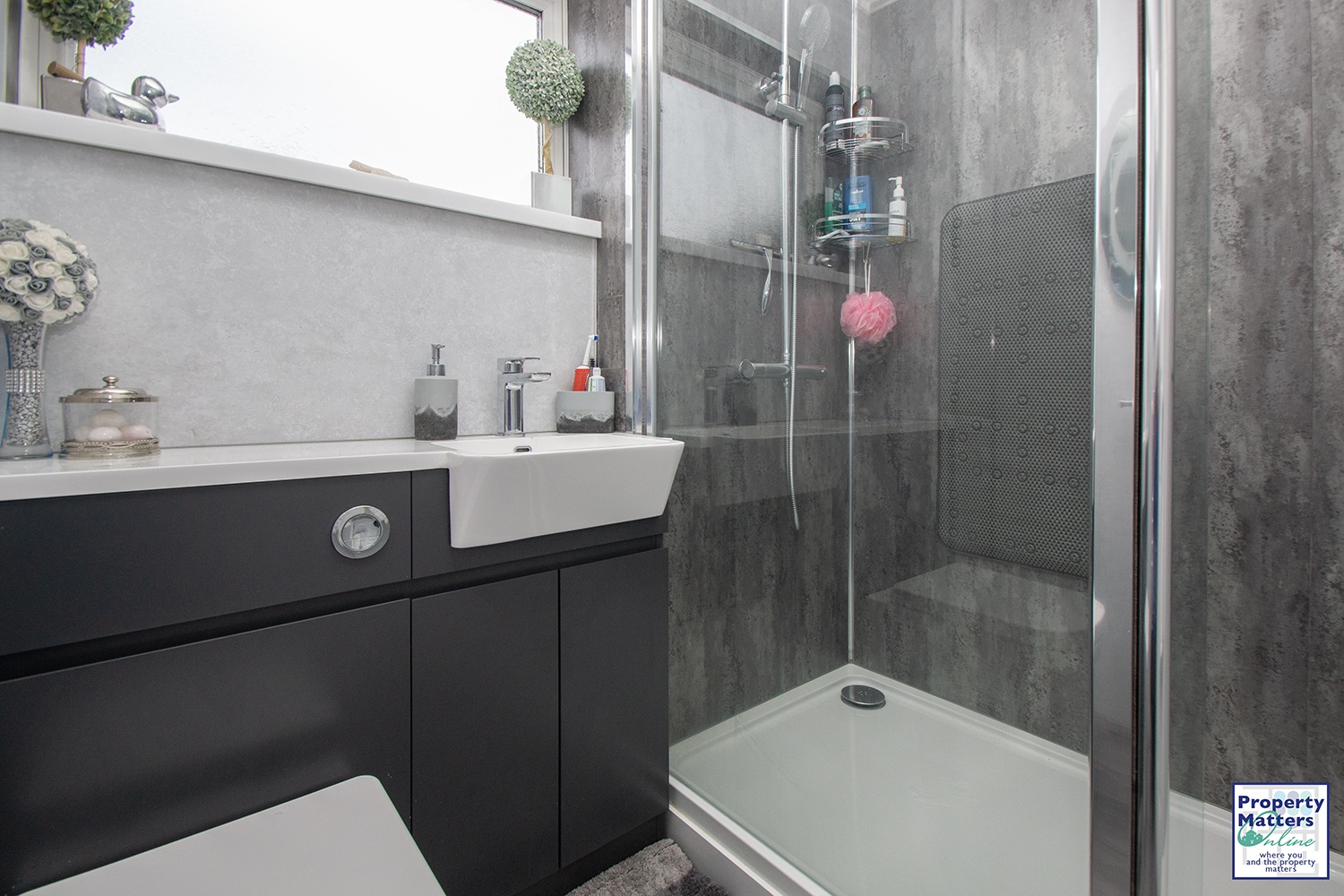 The property is formed over two level and comprising lower-level entrance hallway giving access to lounge, large storage cupboard and staircase to upper level, spacious front facing lounge with modern décor which in turn gives access to the rear facing dining/activity area with fitted units, modern décor and quality flooring. Fitted kitchen with a range of wall and base unit’s, complementary worktops, gas cooker with extractor, stainless steel sink with mono tap, plumbing for automatic washing machine, handy storage cupboards, and rear door giving access to garden. On the upper level there are three good sized bedrooms, two boasting fitting storage and a recently refitted family shower room with fitted vanity units and modern wet wall.