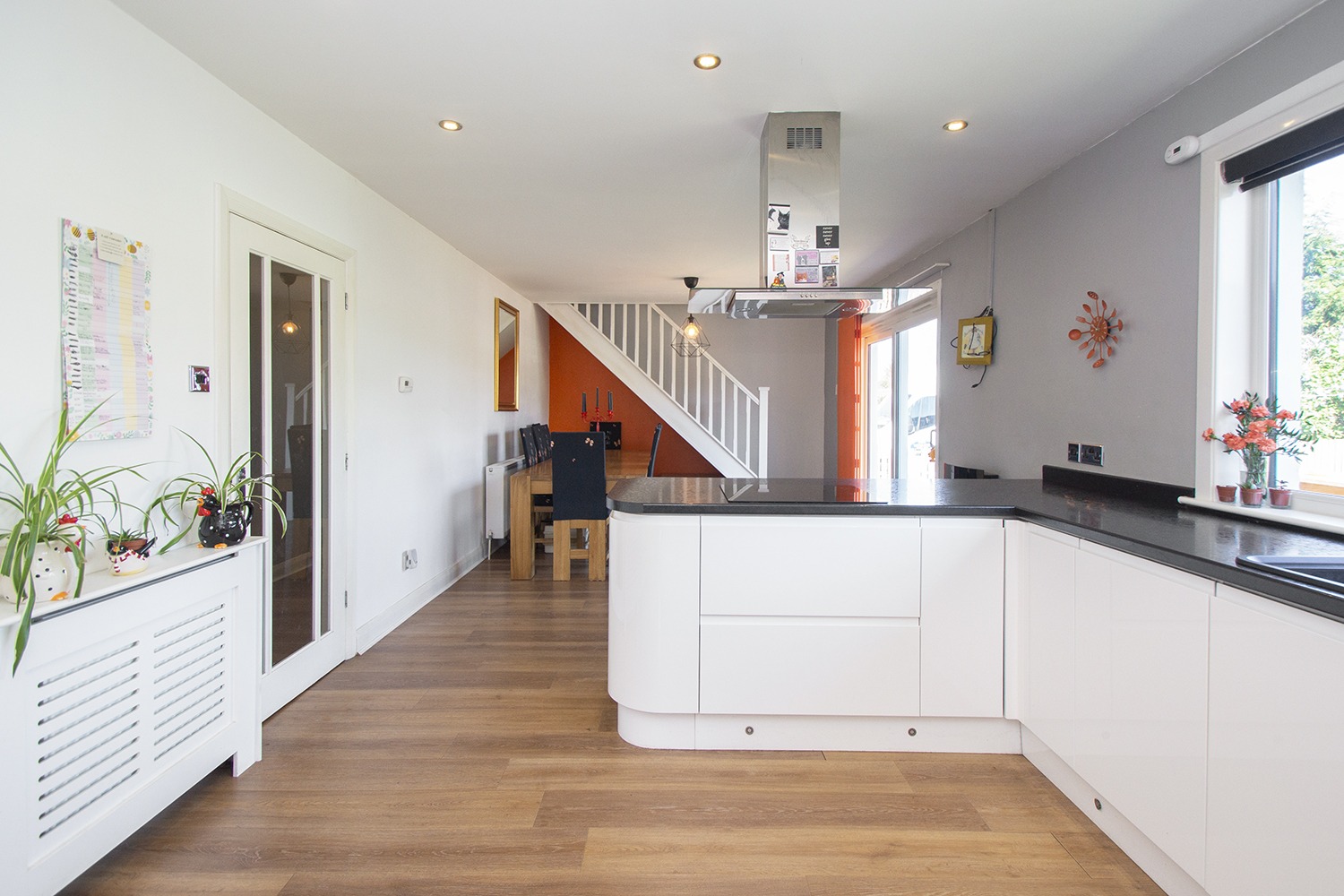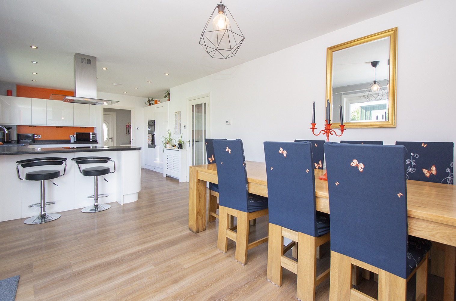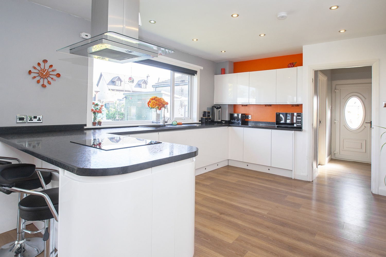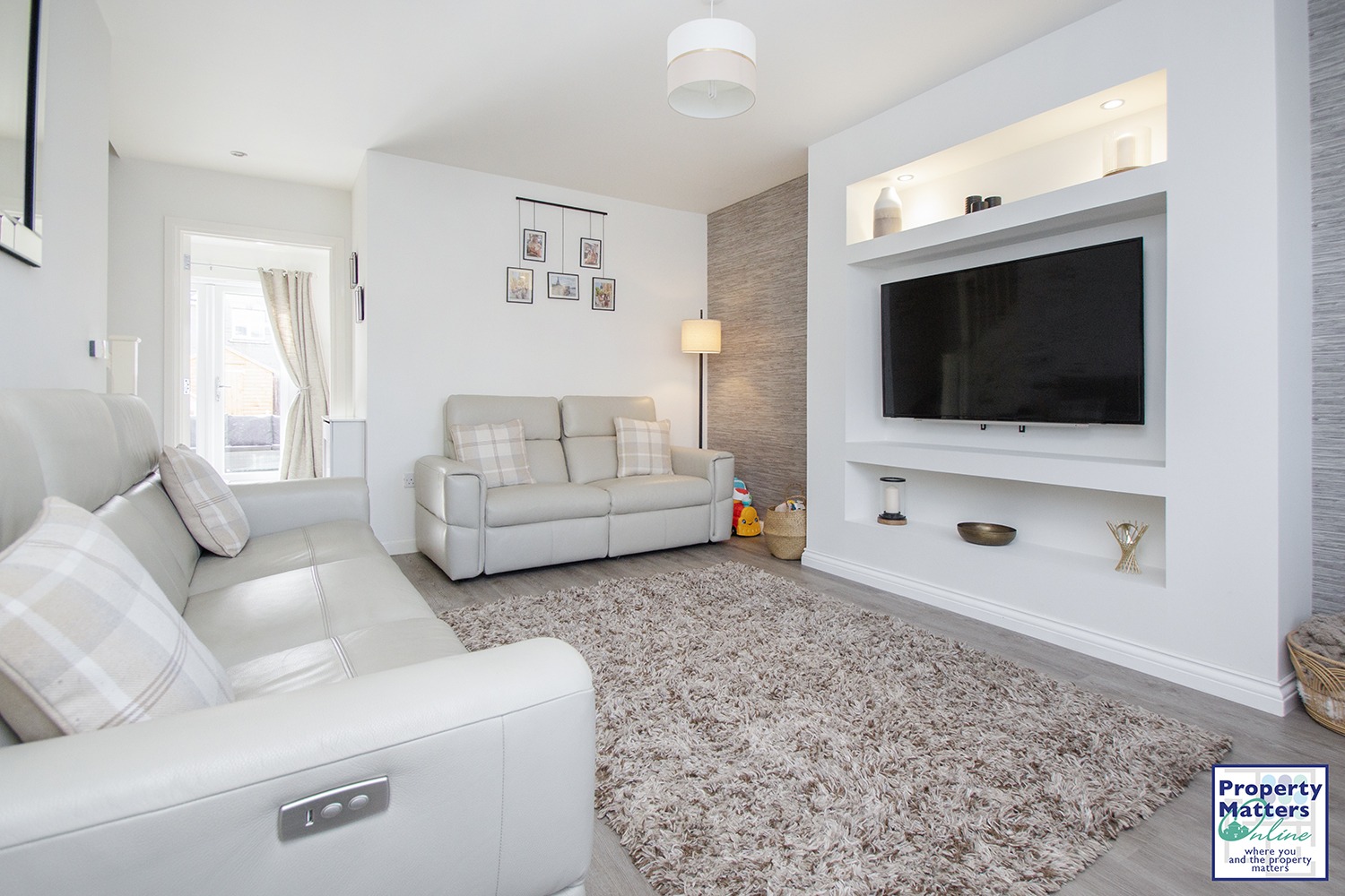 The well-proportioned family home is presented in walk-in condition throughout and comprises entrance vestibule which leads to the welcoming entrance hallway with storage, front facing lounge with large patio doors which open to decking area and allow an abundance of natural light to flow through. Contemporary dining kitchen housing an ample range of base and wall units with complementary worktops and upstands, and well as a range of integrated appliances. The utility room is accessed from the kitchen and hou...
