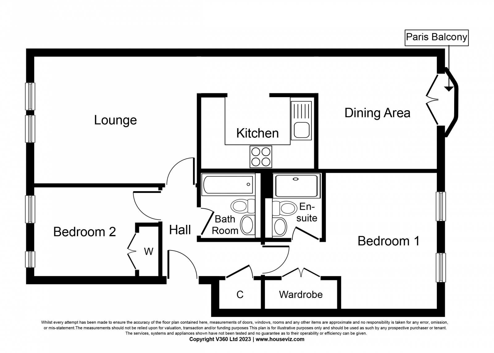 The accommodation iswell-proportioned throughout and comprises welcoming entrance hallway; frontfacing lounge; open plan kitchen and dining room with French doors and Parisbalcony to the rear. The kitchen houses an ample range of base and wall unitswith complementary worktops and integrated appliances which include gas hob,electric oven and extractor hood, dishwasher and fridge freezer. Spacious rearfacing master bedroom with double built-in wardrobes and three piece ensuitewhich comprises double shower cubicle with mixer shower, and vanity unithousing the wc and wash hand basin. Good sized front facing second bedroom withdouble built in wardrobes. Three piece family bathroom which comprises bath andvanity unit which houses the wc and wash hand basin.