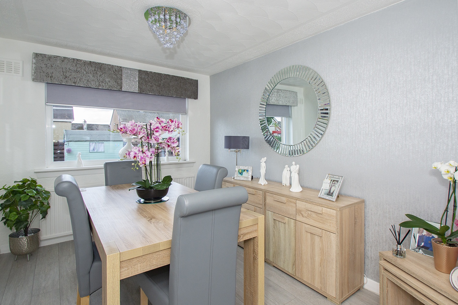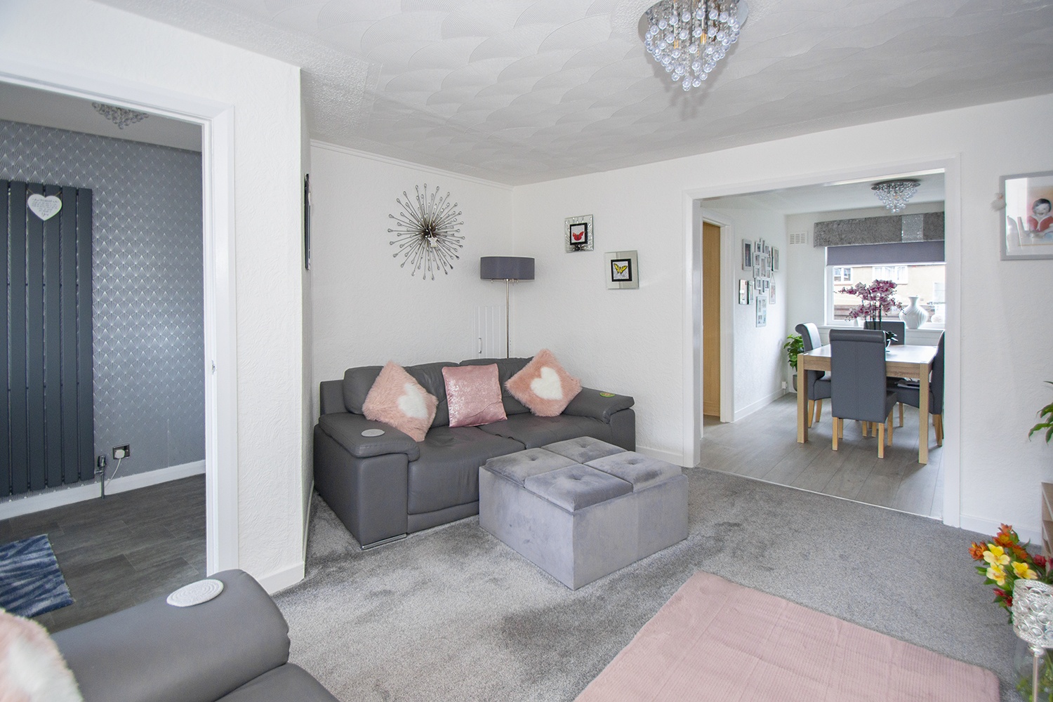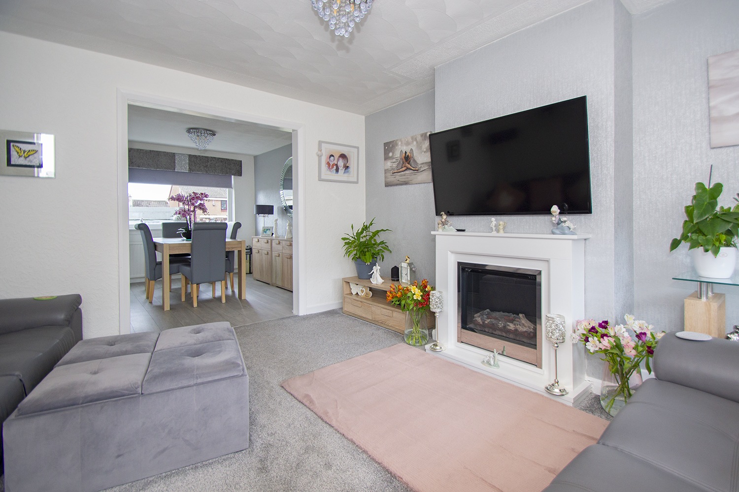 This exceptional family home is presented in walk-incondition throughout and is formed over two levels with the lower levelcomprising welcoming entrance hallway; front facing lounge with open archwaywhich leads to the formal dining area with rear facing outlook. Fitted kitchen which houses and ample rangeof base and wall units with complementary worktops and tiled splash-back areas,integrated gas hob, extractor fan and oven. The upper level accommodation houses the three double bedrooms and threepiece shower room comprising wc, wash hand basin with vanity unit and showercubicle.