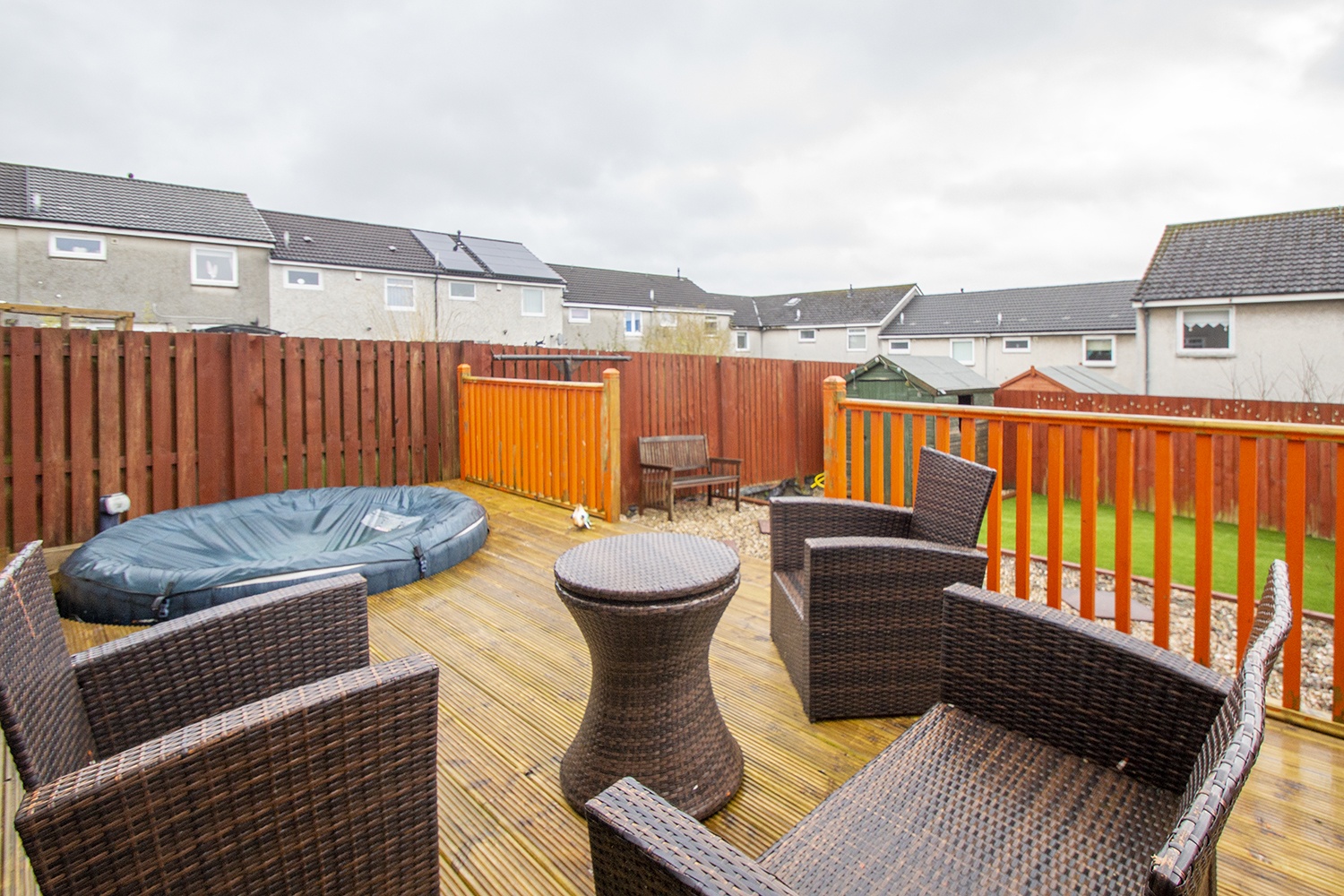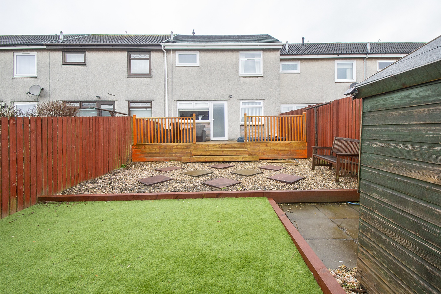 The property further benefits from an easily maintained hardlandscape garden to the front. The reargarden had decked, chipped and Astro Turf along with garden shed. Double glazing. Gas central heating.