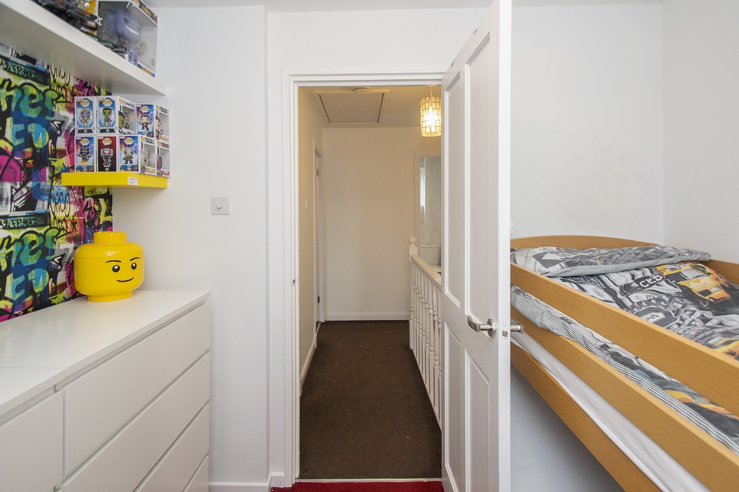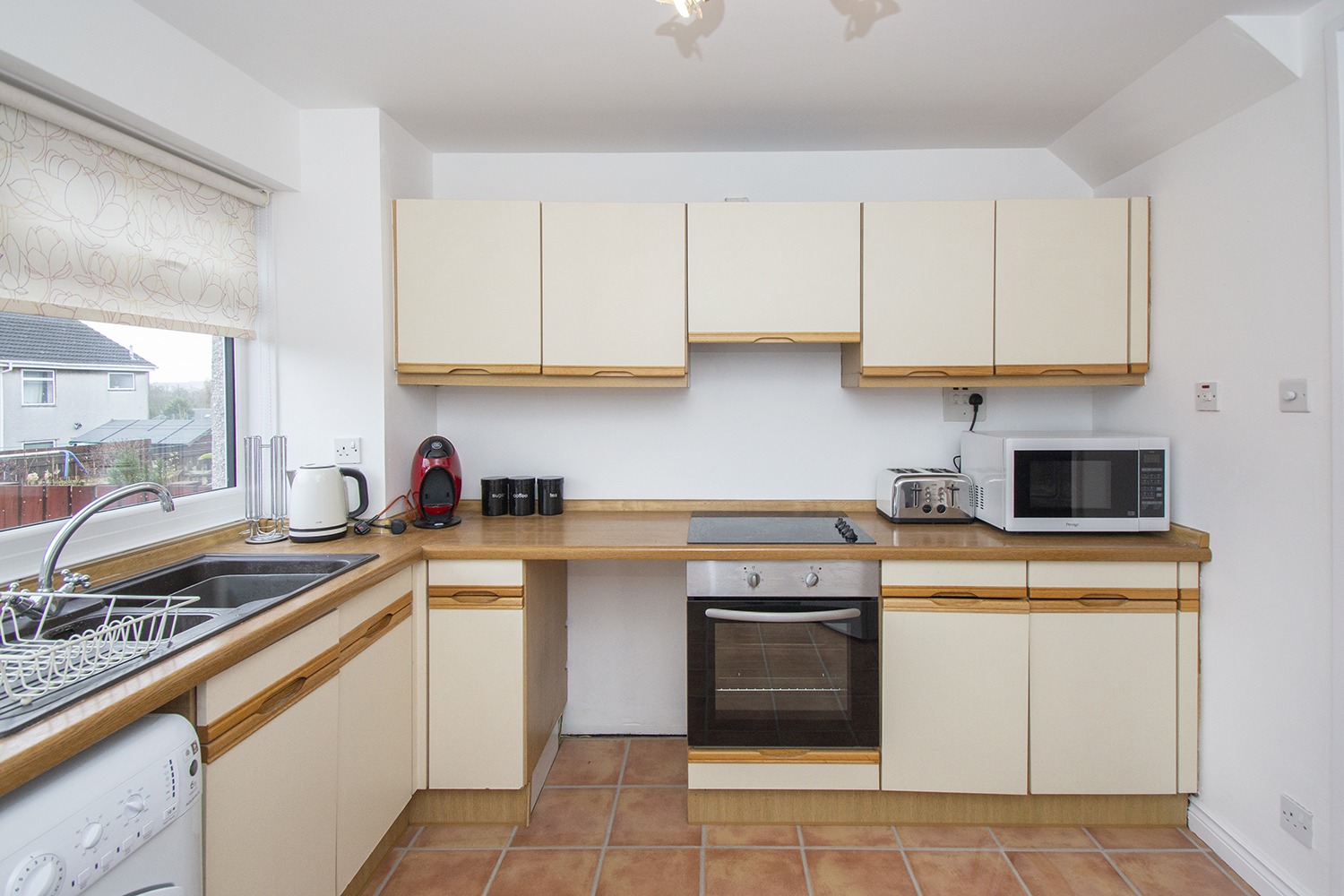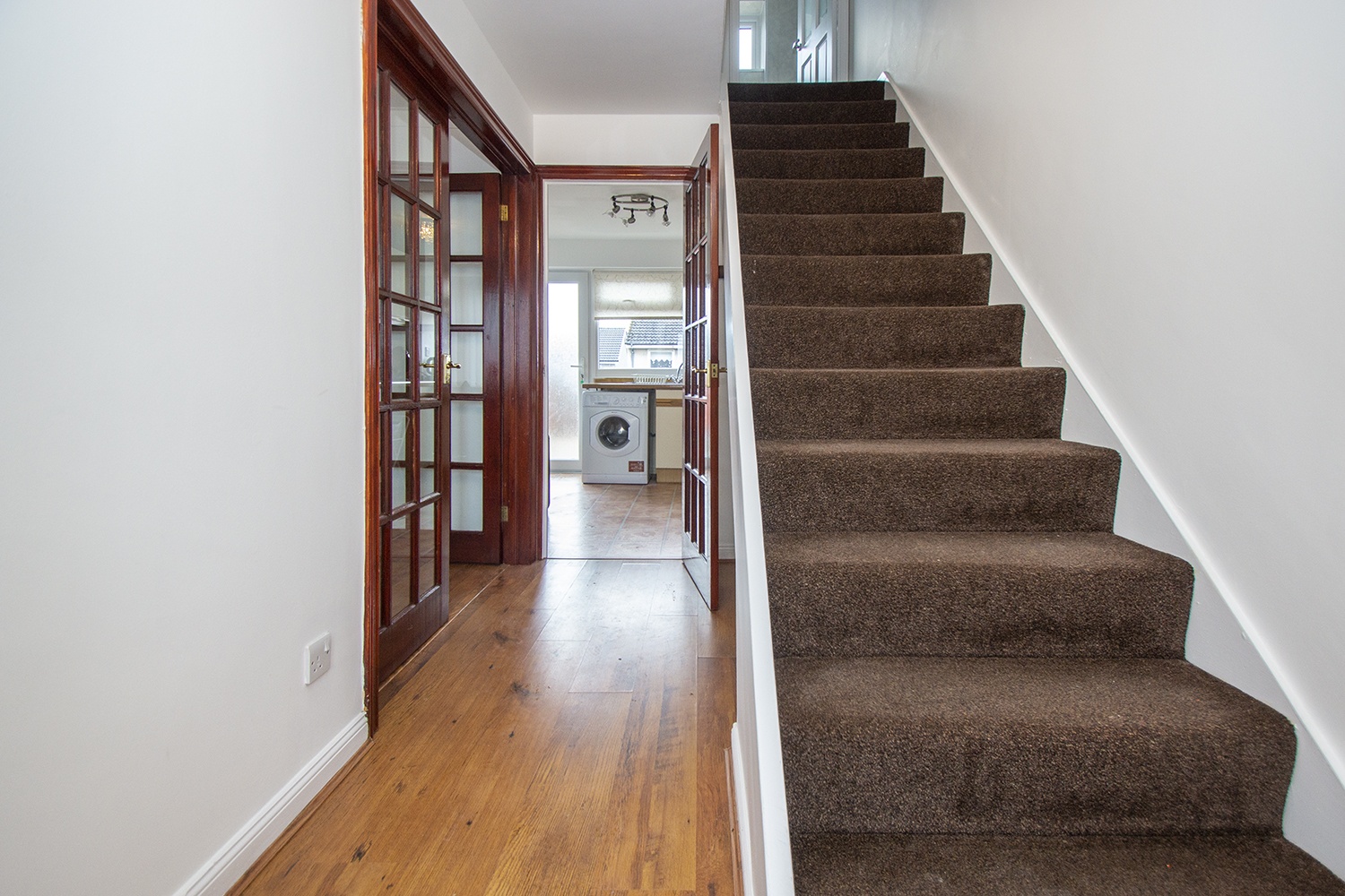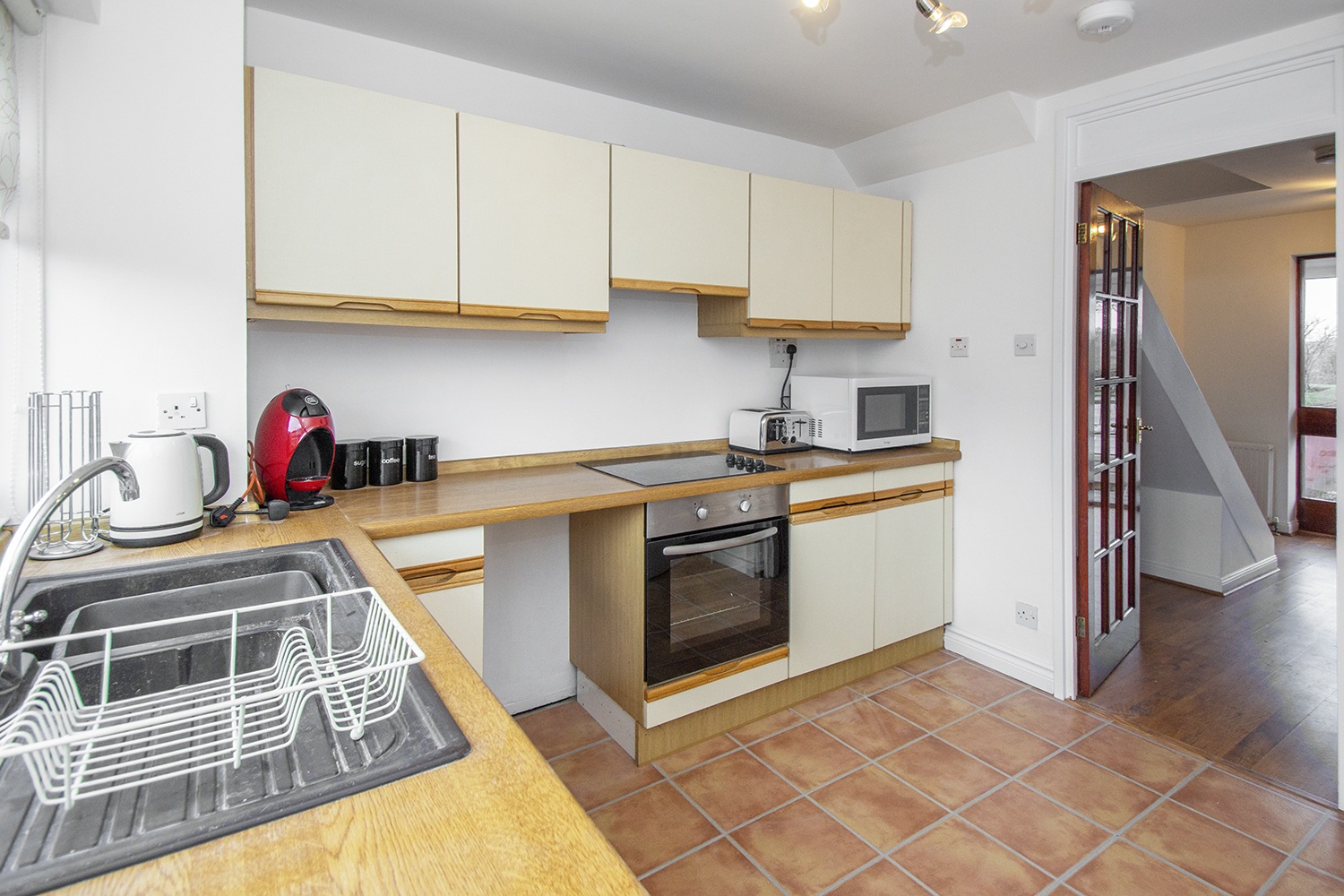 The accommodation is formed over two levels with the lowerlevel comprising entrance vestibule leading to the entrance hallway. Well-proportioned dining lounge with twinaspect window formation which allows an abundance of natural light to flow. Rear facing which houses an ample range ofbase and wall units with complementary worktops and an integrated electric hob,oven and extractor hood. The upper levelaccommodation houses the rear facing master bedroom with wall length built-inwardrobes with sliding mirrored doors. Front facing double bedroom and box room. Three piece shower room comprising wc, vanityunit which houses the wash hand basin and corner shower cubicle.