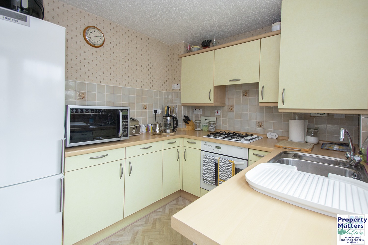 The accommodation is formed over two levels, with the groundfloor comprising entrance vestibule leading the well-proportioned lounge withlarge storage cupboard and ceiling to floor front facing window which allows anabundance of natural light to flow through. Rear facing fitted “Rational” kitchen which houses an ample range ofbase and wall units with complementary worktops and tiled splash back areas,integrated gas hob and electric oven, large storage cupboard. The first-floor accommodation houses thefront facing master bedroom with double built-in wardrobes. Rear-facing second bedroom with storagecupboard. Three-piece family bathroomcomprising wc, wash hand basin and bath.