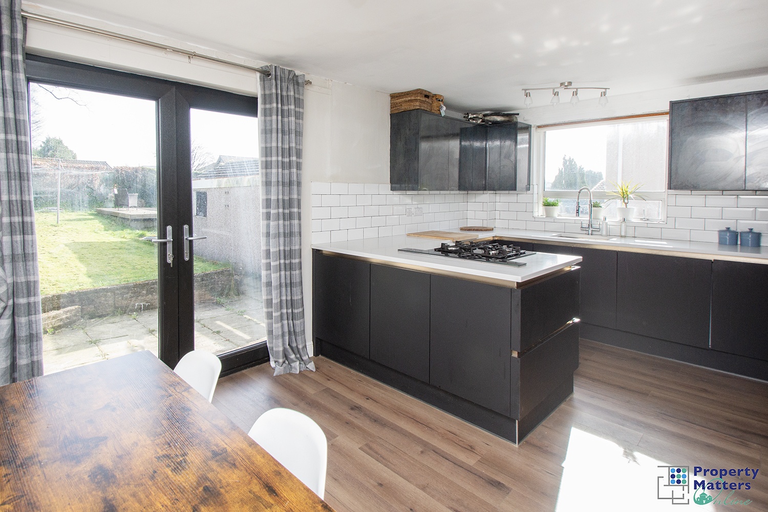 • Large French doors connecting lounge to dining kitchen