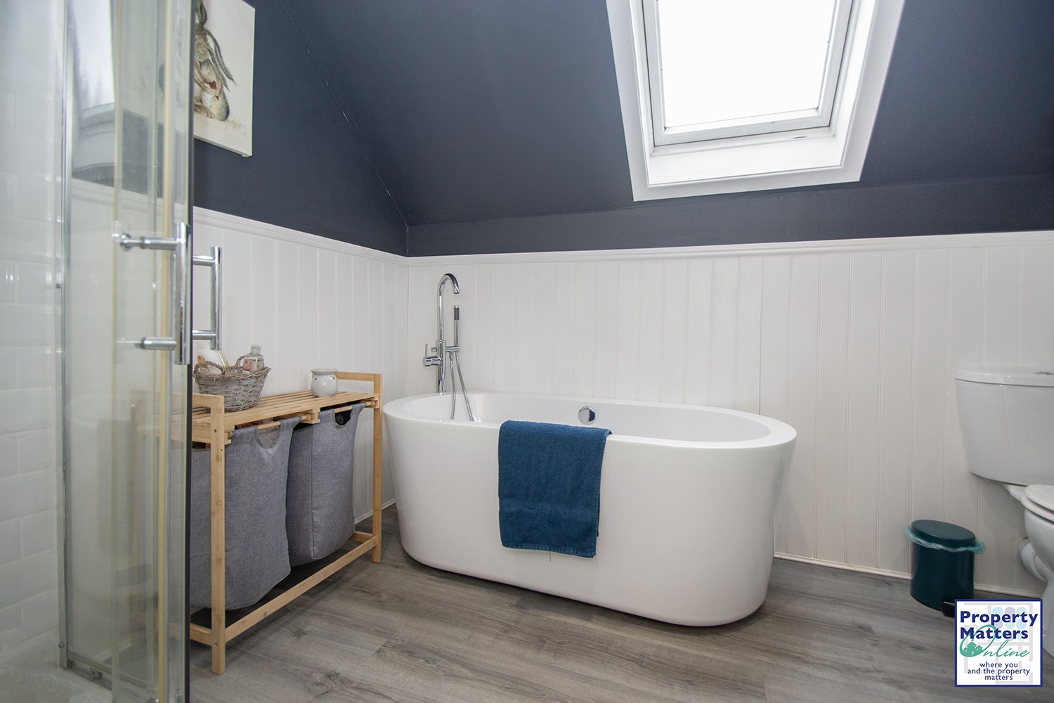 Upstairs, a spacious landing with a Velux skylight providesaccess to the remaining rooms. The primary bedroom, accessed via a smallcorridor, is positioned at the rear and enjoys views over the garden andsurrounding countryside. It includes built-in wardrobes and a large en-suiteshower room, which could be reconfigured to include a walk-in wardrobe ifpreferred. Across the hall are two further double bedrooms, both of which canalso accommodate a king-size bed. The modern family bathroom comprises a washhand basin with vanity storage, WC, freestanding bath and separate shower.