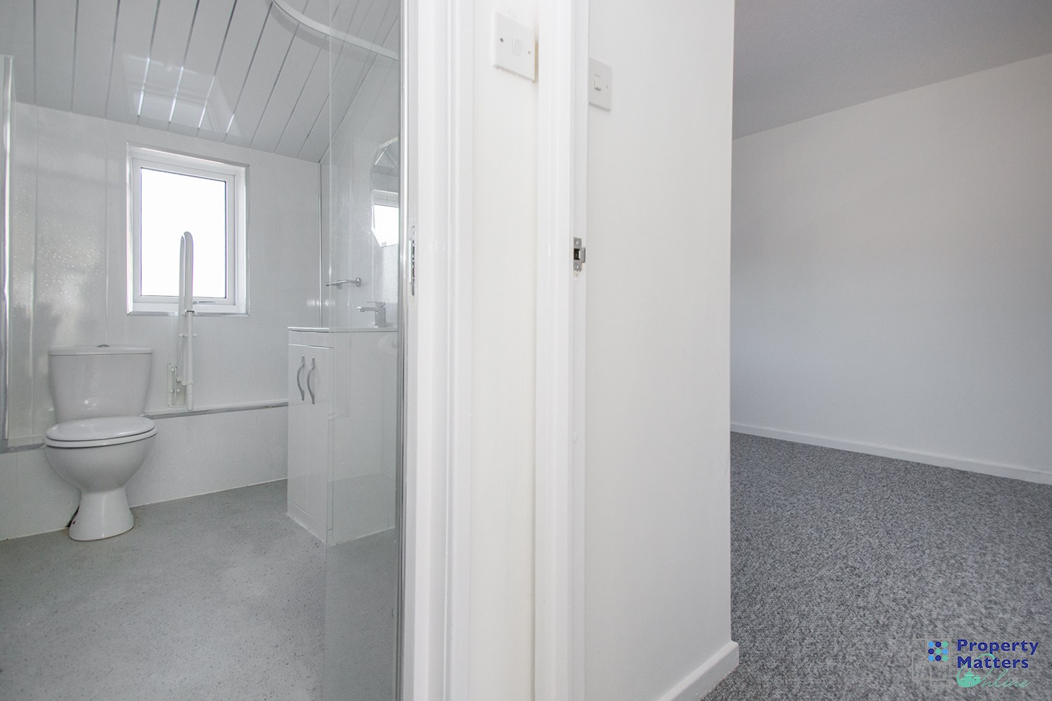 On the upper level there are two good sized bedrooms, both with fitted storage. The modern wet room includes a wash hand basin with vanity unit, WC and showering area