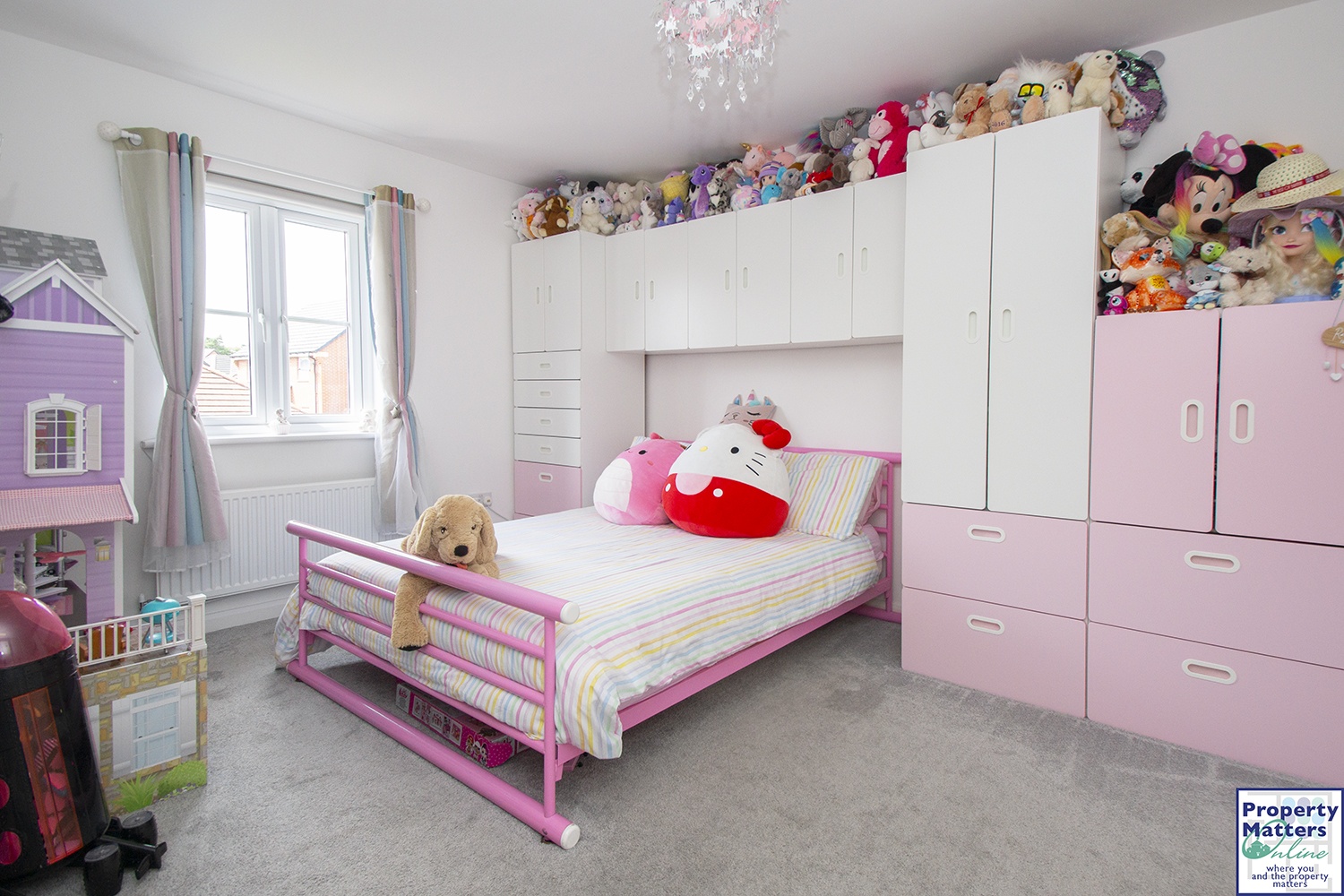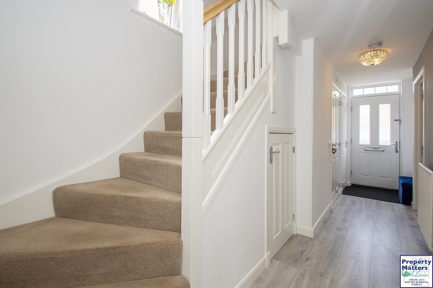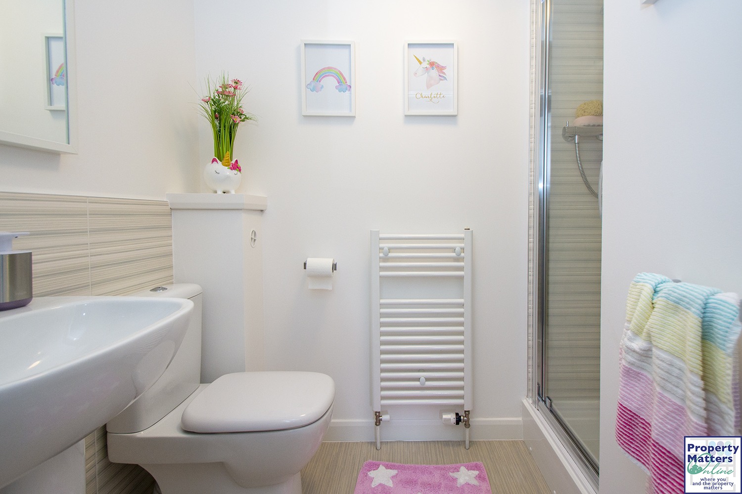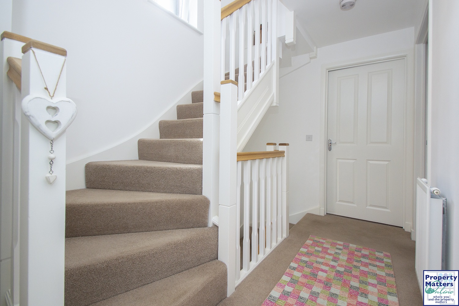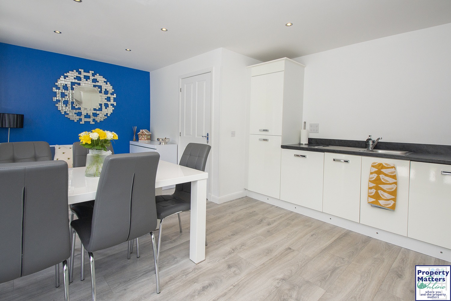 Theaccommodation: entrance hallway, large spacious front facing lounge withfeature bay window, modern kitchen/diner with integrated appliances with twinFrench doors giving access to the garden, handy downstairs cloakroom, staircaseleading to first floor.  On the firstfloor there are 3 bedrooms.  Bedroom twohas its own ensuite and fitted wardrobes. There is also a modern family bathroom. On the second level the main bedroom has great storage and its ownensuite.  Gas CH. DG. Contemporary décorwith quality fitments throughout. Large driveway offering parking for severalcars leading to detached garage with power and light.  Well maintained garden to front and fullyenclosed very private rear garden with patio grassed and planted areas.  Early viewing advised of this lovely familyhome.