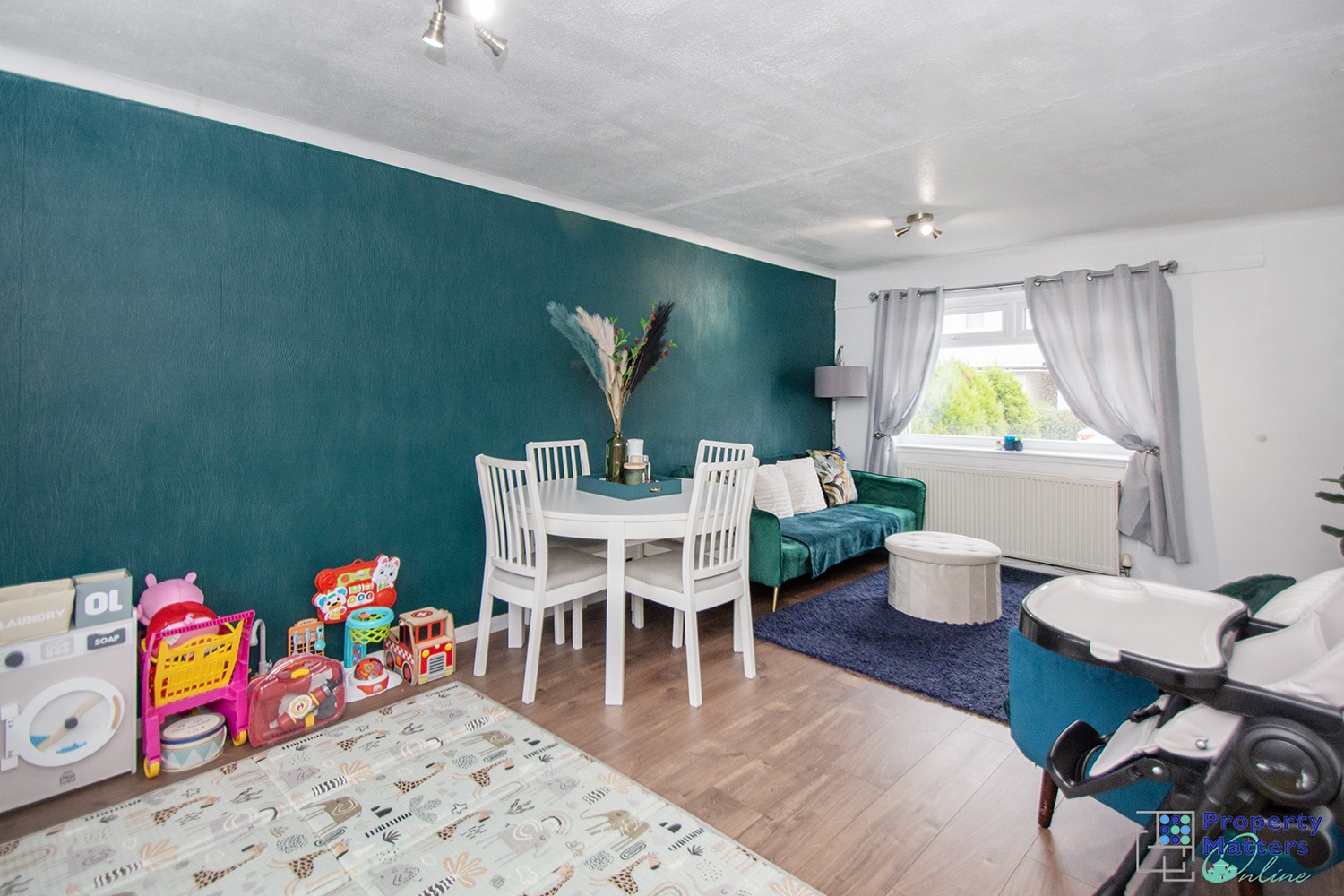 Set over two levels, the accommodation offers both space and comfort, making it an ideal home for families and first-time buyers alike. On the ground floor, a welcoming entrance hallway with useful storage leads into a bright and generously sized lounge with designated dining area. The attractive twin aspect window formation allows natural light to flood the room, creating a warm and inviting atmosphere throughout.