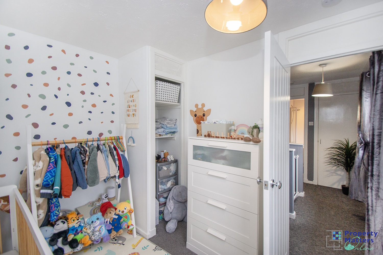 Upstairs, the upper hallway benefits from additional storage and gives access to three well-proportioned bedrooms, each offering comfortable accommodation. The contemporary family bathroom is finished to a high standard and comprises a wc, shower bath with overhead thermostatic shower, and a stylish vanity unit incorporating the wash hand basin.