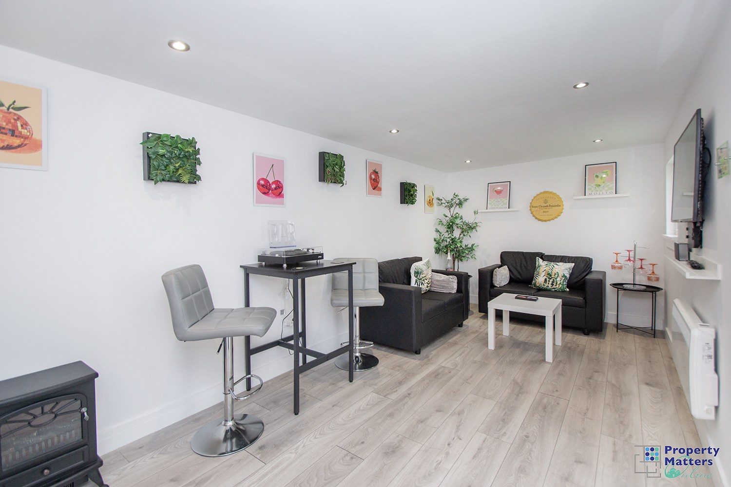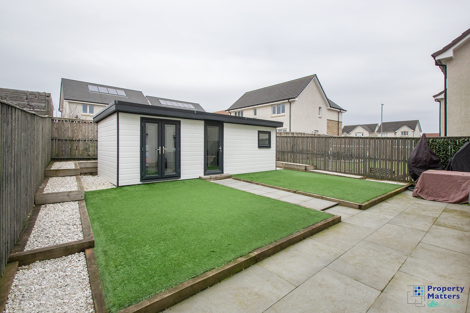 Externally, the property is equally impressive. The front boasts a monoblocdriveway leading to the integral garage, artificial lawn, and mature shrub borders, while the fully enclosedrear garden offers paved and artificial lawn areas alongside a superblyversatile garden room – ideal as a home office, gym, or leisure space.