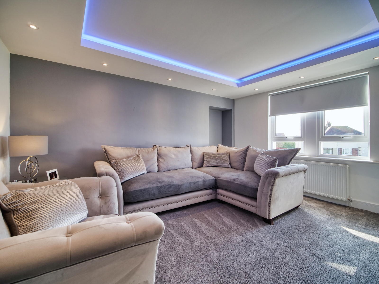 On entering, a staircase rises to an inviting and beautifully presented reception hallway, which provides access to all lower apartments as well as the staircase leading to the impressive attic conversion. The front facing lounge is both elegant and contemporary, enhanced by stylish LED coving and a bespoke media wall featuring an inset real flame log effect electric fire. This thoughtfully designed focal point creates a warm and soothing atmosphere, ideal for both relaxing nights in and entertaining guests.