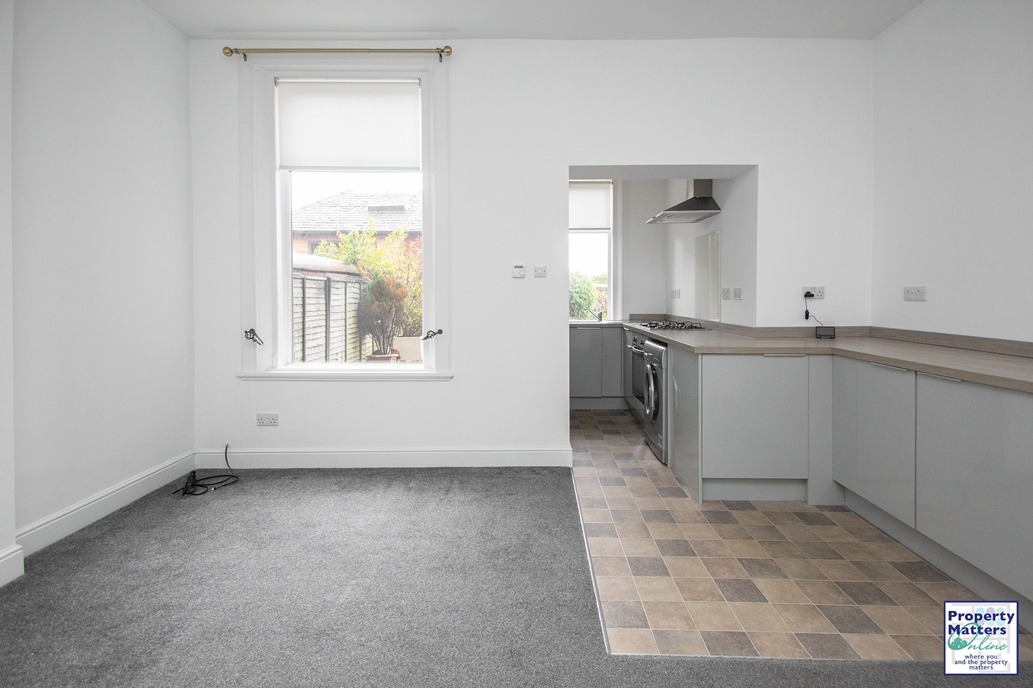 Spacious rear facing living area with views over\ngarden and to surrounding countryside. Fresh modern décor. Kitchen area with\nrange of units and complimentary worktops. Window to rear with open views.\nInset sink with taps. Appliances including gas hob, electric oven washing\nmachine and fridge/freezer. Ample\npower points. Separate living and dining\narea.