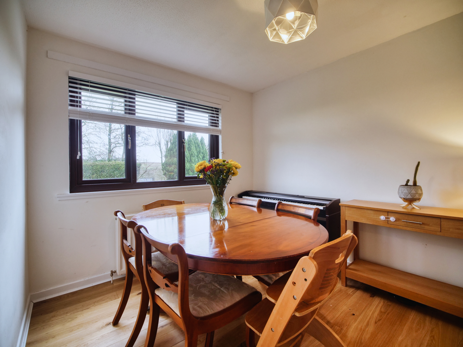 Offering flexible and spacious family living, the accommodation is arrangedover two levels. On the ground floor, a welcoming entrance hallway leads into abright and spacious lounge, where front facing patio doors allow natural lightto flood the room, creating a warm and inviting atmosphere. The modern fittedkitchen is well appointed with an ample range of base units, complementaryworktops, a breakfast bar, and integrated electric oven, hob and extractorhood. To the rear, a versatile dining room provides additional living space andmay equally serve as a third bedroom, depending on individual requirements. Aconvenient downstairs WC completes the lower level.